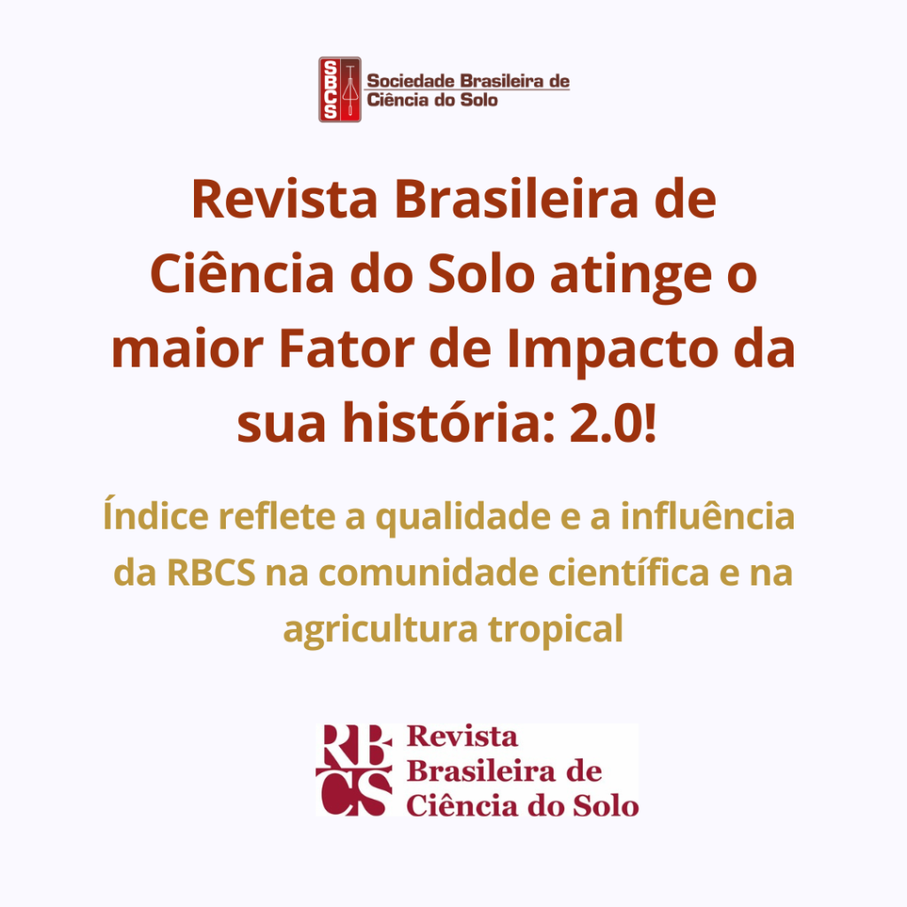 Uma ótima notícia para a ciência do solo! A Revista Brasileira de Ciência do Solo (RBCS), acaba de atingir o maior fator de impacto da sua história: 2.0! A RBCS é editada pela Sociedade Brasileira do Solo há 48 anos e uma referência para a agricultura tropical. O fator de impacto é um indicador que […]