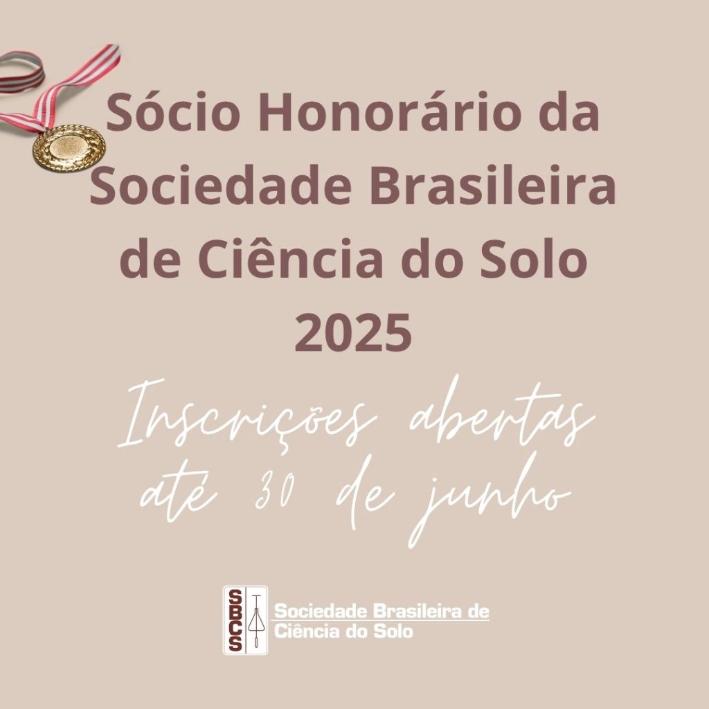 Estão abertas até o dia 30 de junho, as inscrições para indicações de candidatos à honraria “Sócio Honorário da Sociedade Brasileira de Ciência do Solo – 2025”, que será concedida durante o XXXIX Congresso Brasileiro de Ciência do Solo, em setembro, no Maranhão.A homenagem é concedida a quem tenha contribuído de forma notável para o […]