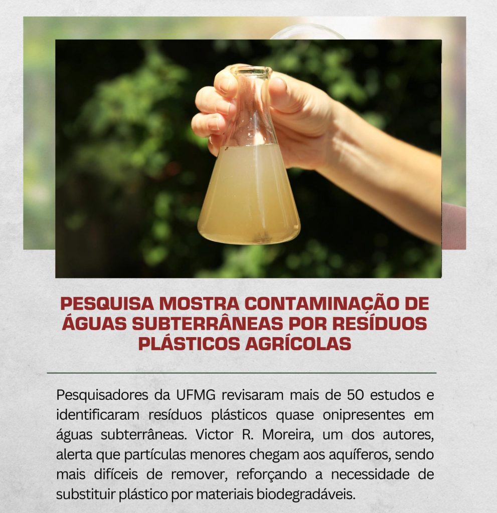 A study conducted at UFMG reviewed more than 50 articles published between 2019 and 2024 and shows that micro- and nanoplastics originating from agricultural products, such as mulches, pesticide packaging, and fertilizer bags, are present in groundwater, which supplies nearly half of the world’s drinking water. Smaller particles reach aquifers and are more difficult to […]