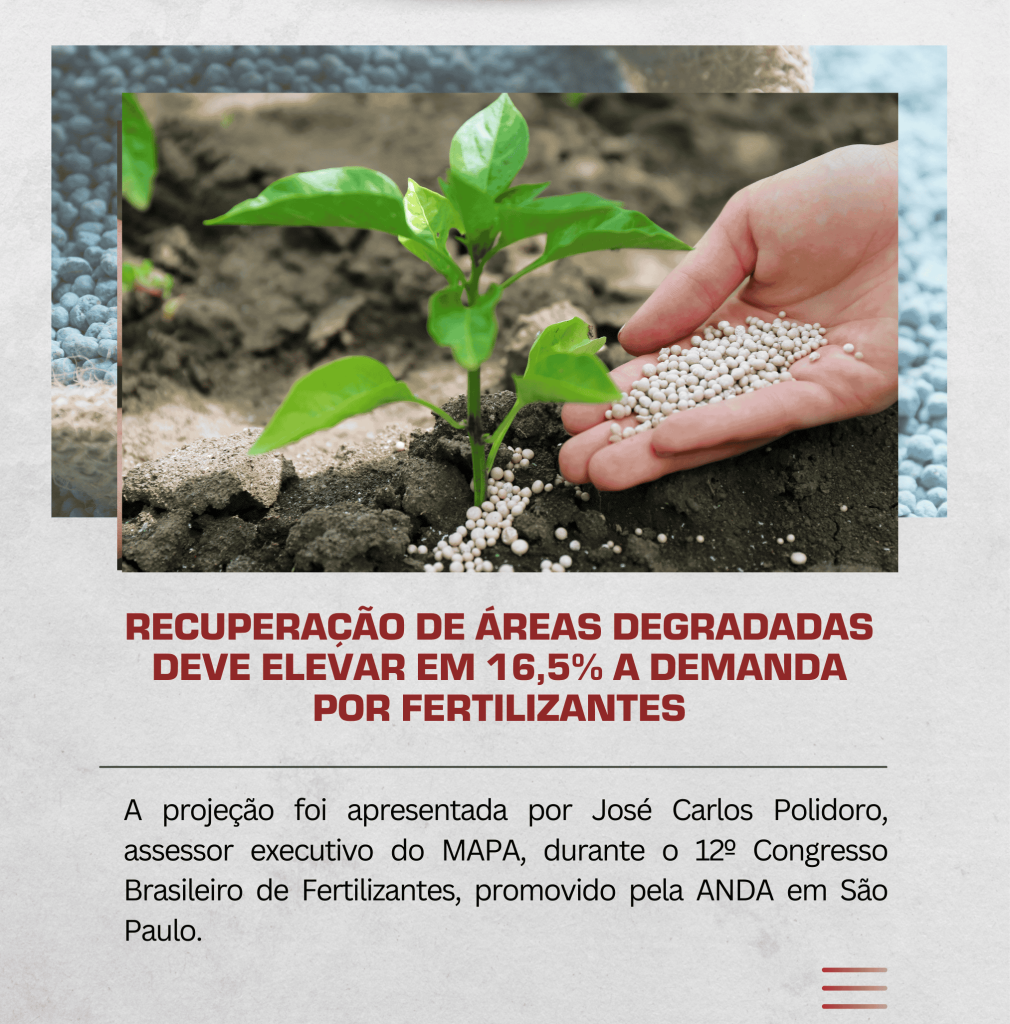Recovery of degraded areas in Brazil could strongly boost the fertilizer market. According to the Ministry of Agriculture and Livestock (Mapa), fertilizer use, projected at 62.7 million tons by 2036, could reach 73.1 million tons with the implementation of the Caminho Verde Brasil Program, representing a 16.5% increase. The country has 40 million hectares of […]